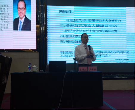內(nèi)地-香港聯(lián)合調(diào)解中心主席羅偉雄從國際化角度講解了調(diào)解的發(fā)展趨勢,國際調(diào)解的系統(tǒng)架構(gòu),并分享了糾紛調(diào)解的案例。