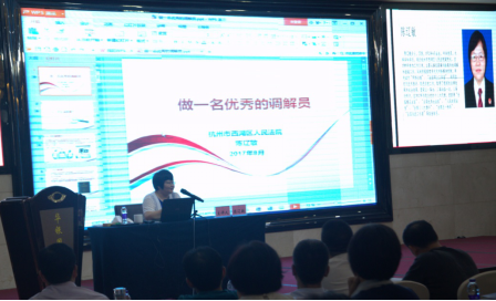 杭州西湖區(qū)法院副院長陳遼敏從調(diào)解的技巧、調(diào)解方法的選擇、調(diào)解員素養(yǎng)等方面闡述了如何做一名優(yōu)秀的調(diào)解員。