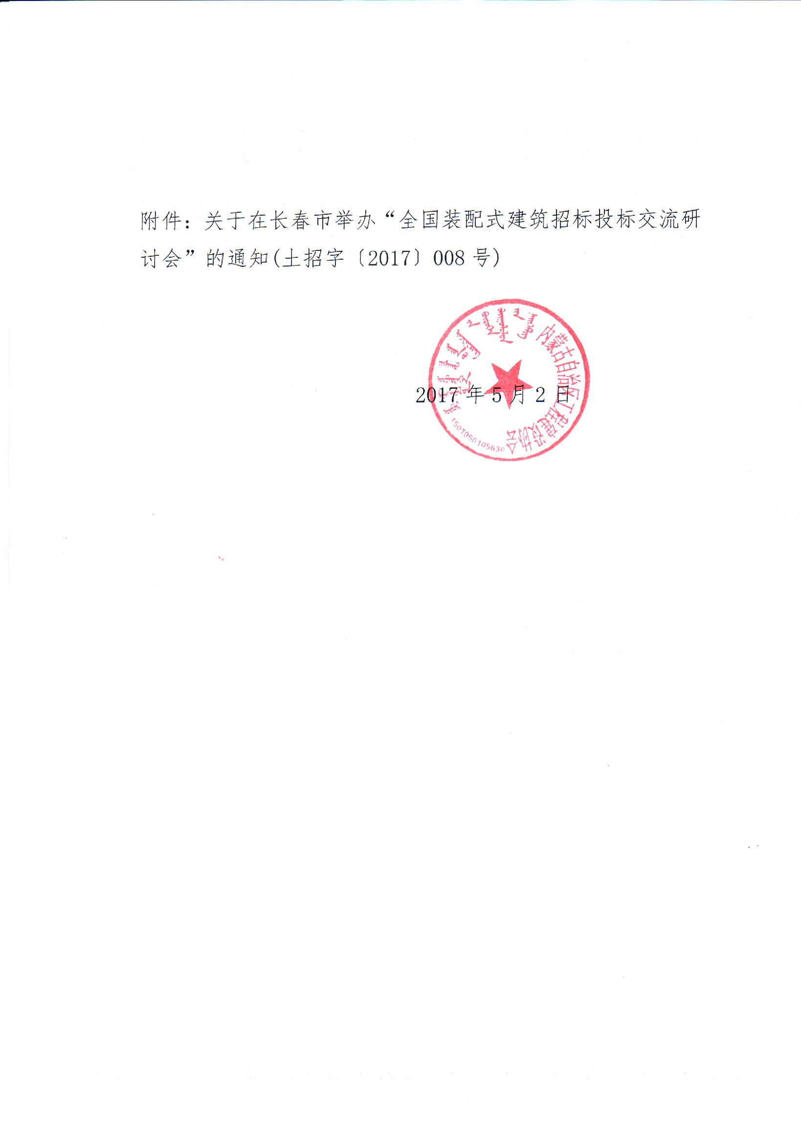 附件:關(guān)于在長春市舉辦“全國裝配式建筑招標(biāo)投標(biāo)交流研討會”的通知(土招字{2017}008號).docx
