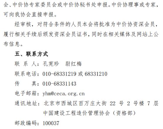 符合資深會員條件并在推薦范圍的人員,應(yīng)向內(nèi)工建協(xié)申報,由內(nèi)工建協(xié)初審后報送中價協(xié)。